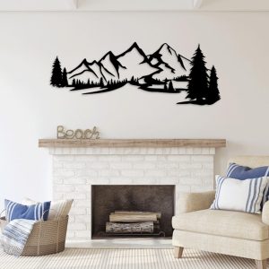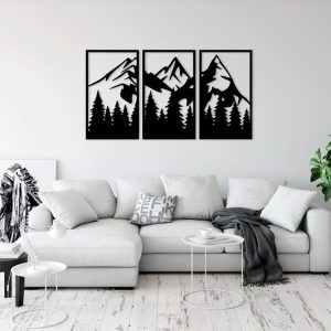 תמונת בחיתוך לייזר- טבע יער הרים גיאומטרי