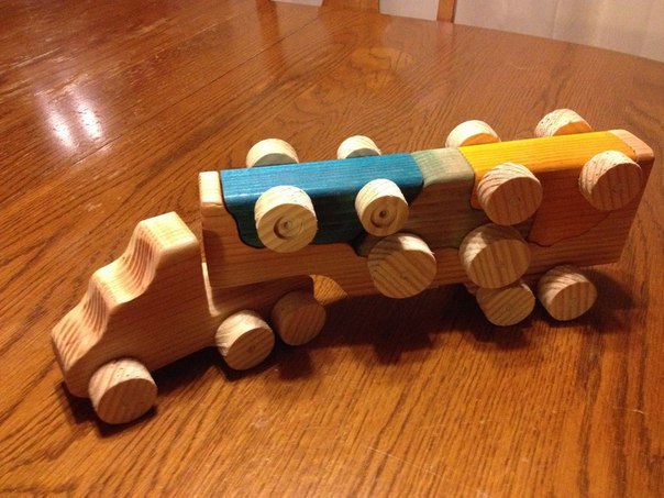 משאית צעצוע מעץ עם תבנית מכוניות צעצוע נשלפת