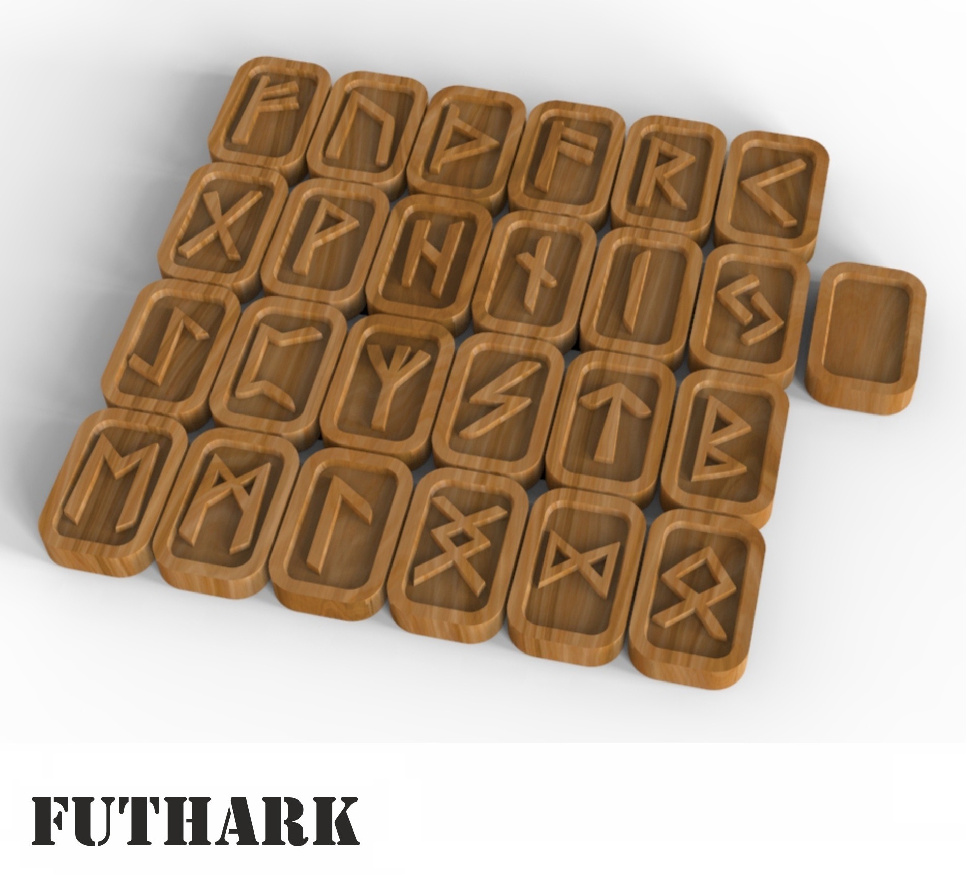 סט רונים מעץ Elder Futhark – בחיתוך בלייזר