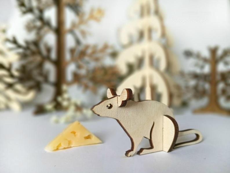 עכבר תבנית ערכת חיות מעץ CNC – בחיתוך בלייזר