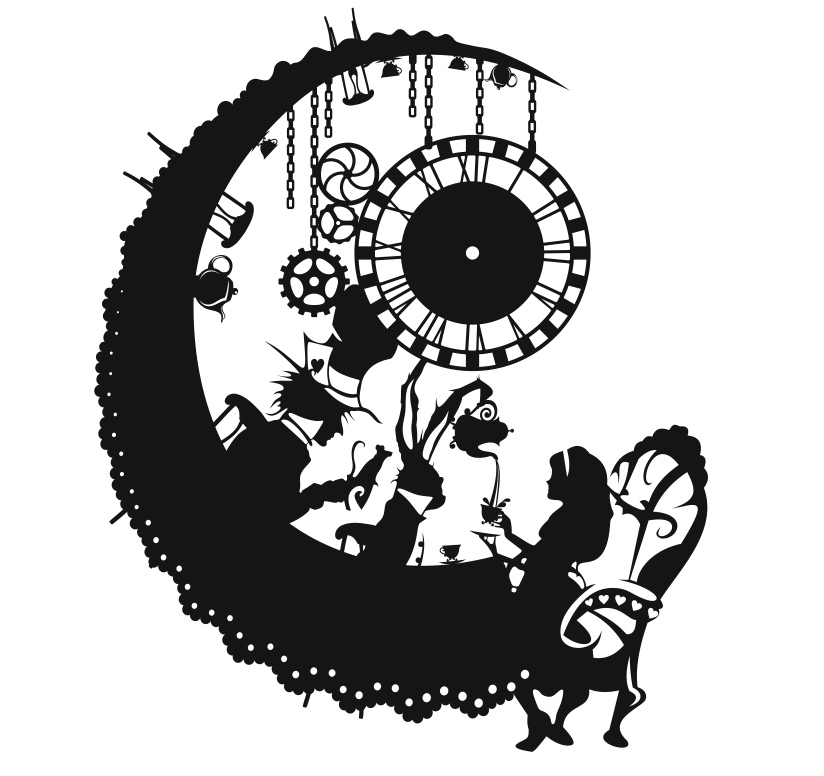 שעון קיר עליסה בארץ הפלאות – בחיתוך בלייזר